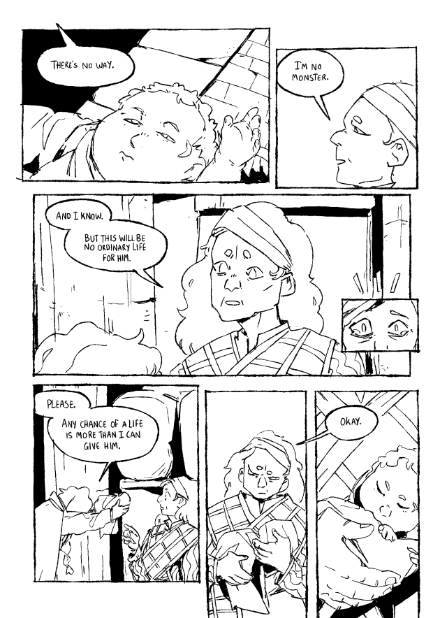 56 pages of black and white art in this slow, sad fantasy story.